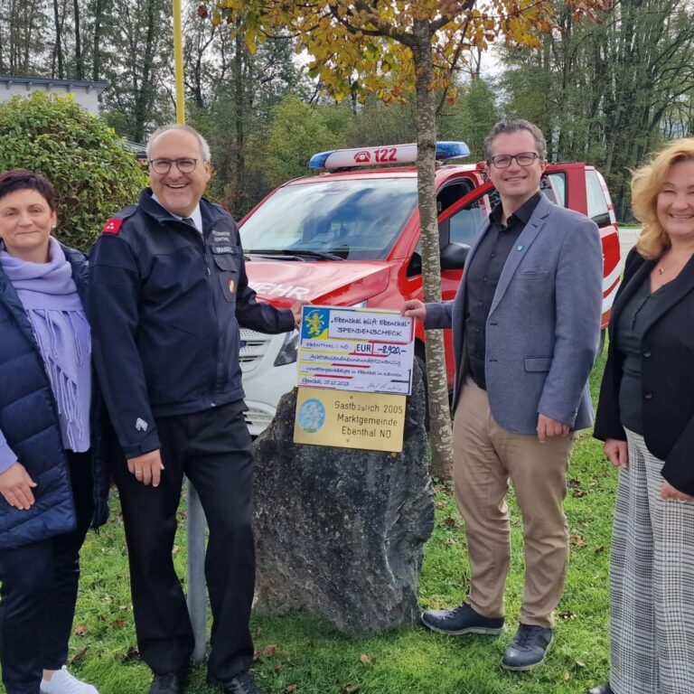 Beim Besuch in unserer Partnergemeinde Ebenthal/Kärnten übergaben Bgm. Christoph Veit und Vbgm. Martha Epp einen Spendenscheck in Höhe…