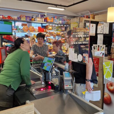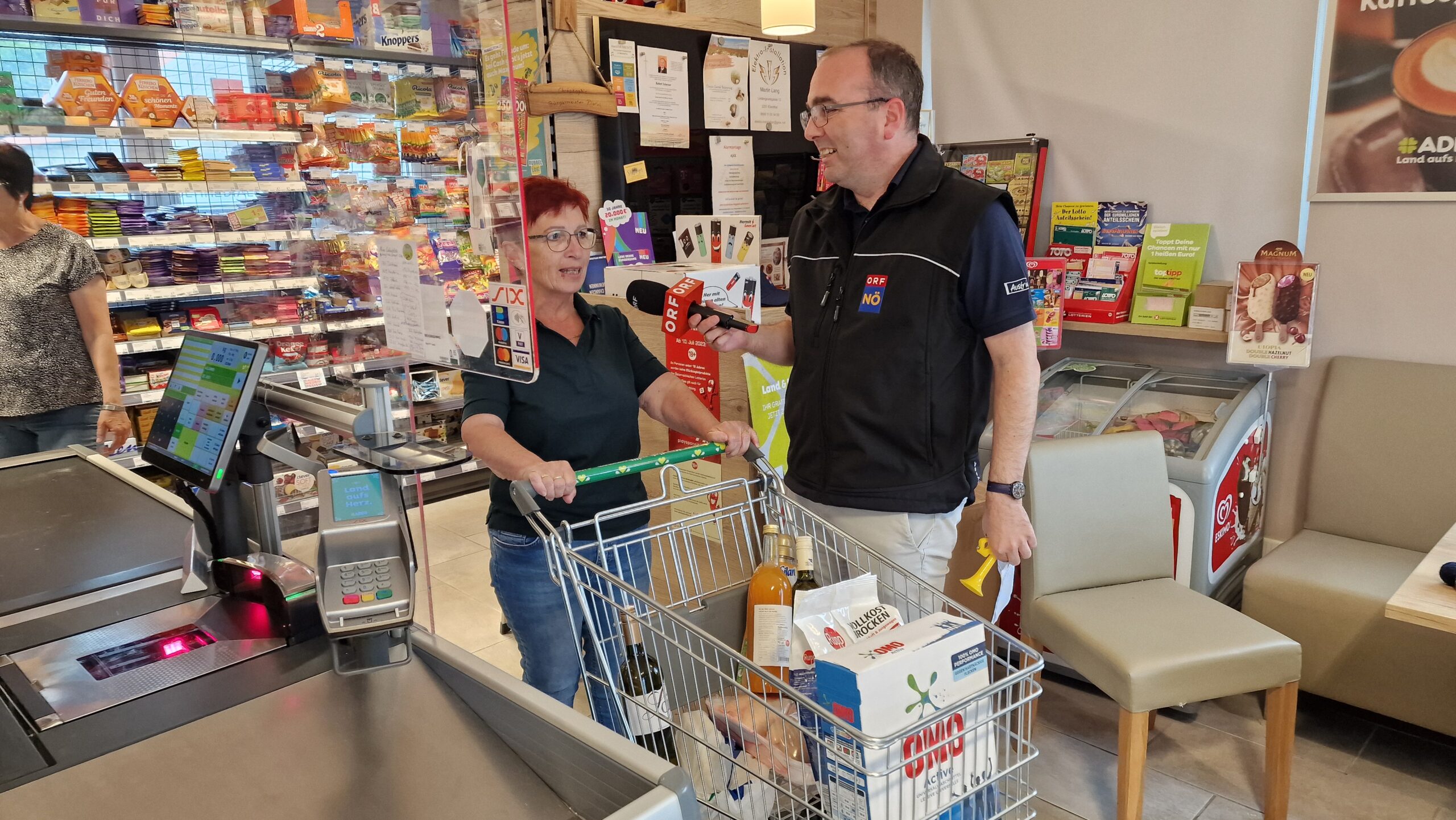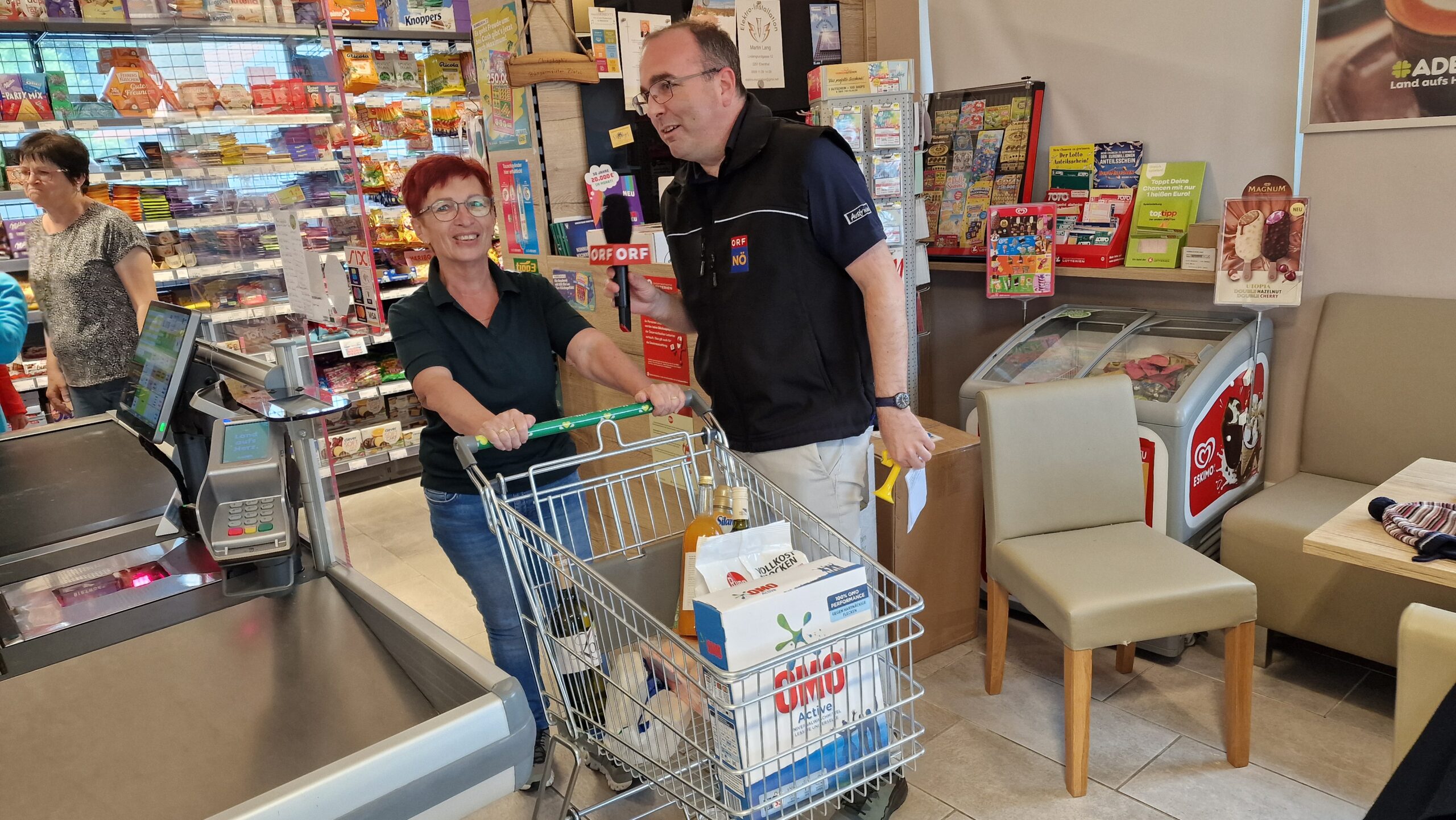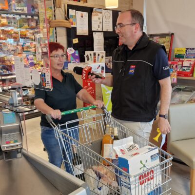 Ziel: in kürzester Zeit Waren ins Wagerl laden und dabei einen vorgegebenen Betrag möglichst nahe erreichen. Regina Wenczl ist das gelungen und so durfte sie sich mit ihrem guten Schätzvermögen und ihrer Schnelligkeit über Einkaufsgutscheine im Wert von 300 Euro für Unser G`schäft freuen.