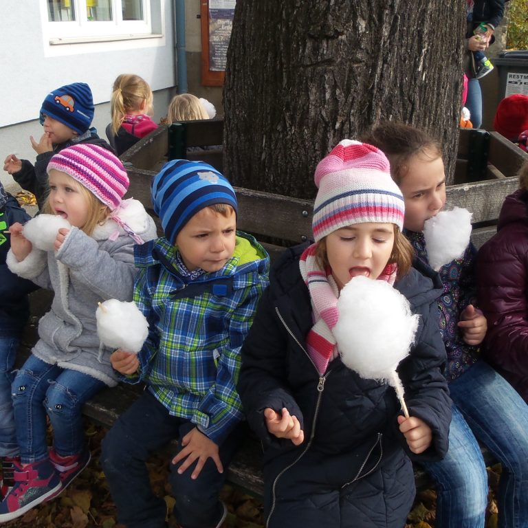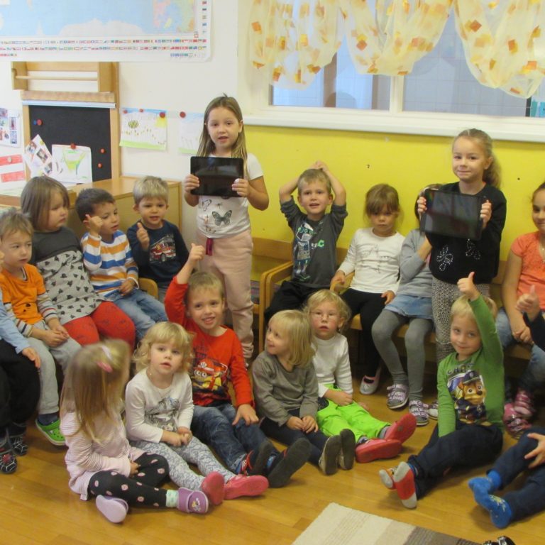 Stolz präsentieren die Kinder des Kindergartens die neuen Tablets, die für jede Gruppe angeschafft wurden. Damit kann auf…