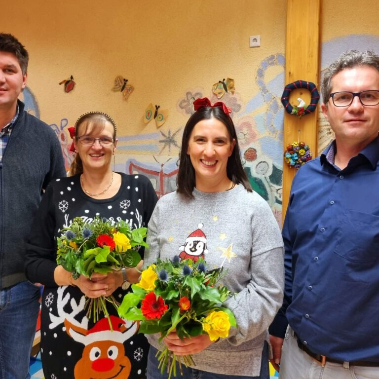Im Rahmen der Weihnachtsfeier im Hort der VS Ebenthal veraschiedeten Bürgermeister Christoph Veit und Direktor Michael Müllner Frau…