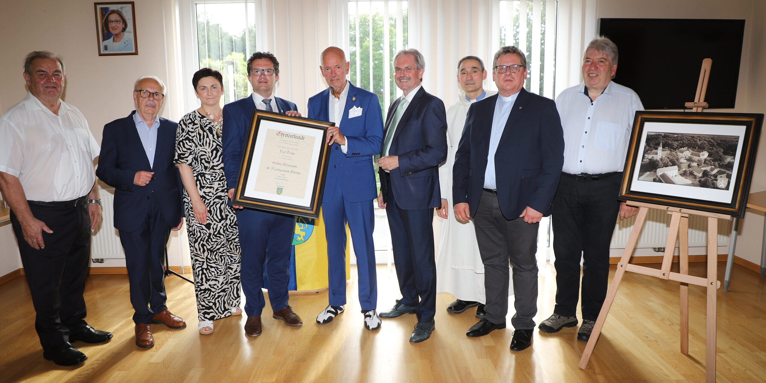 In einer feierlichen Zeremonie wurde dem Wiener Augenarzt Primarius Dr. Paul Drobec das Goldene Ehrenzeichen der Marktgemeinde Ebenthal verliehen. Diese hohe Auszeichnung ehrt Dr. Drobecs unermüdlichen Einsatz und seine Hingabe für die Renovierung und Erhaltung des Schlosses Ebenthal über die letzten 35 Jahre.