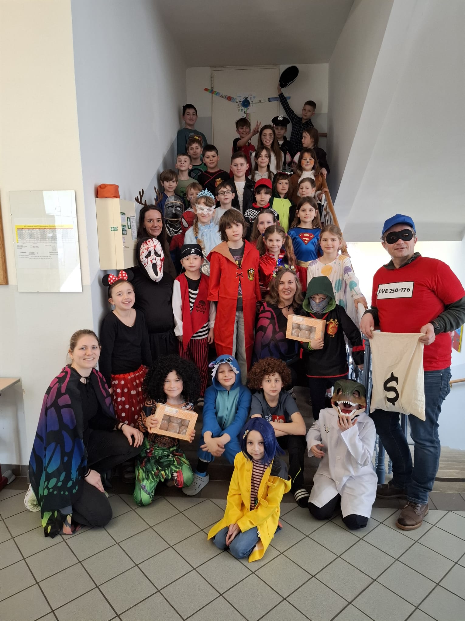 Am Faschingsdienstag stattete Bürgermeister alias Panzerknacker Christoph Veit der Volksschule und dem Kindergarten einen besonders „süßen“ Besuch ab – im Gepäck jede Menge Faschingskrapfen.