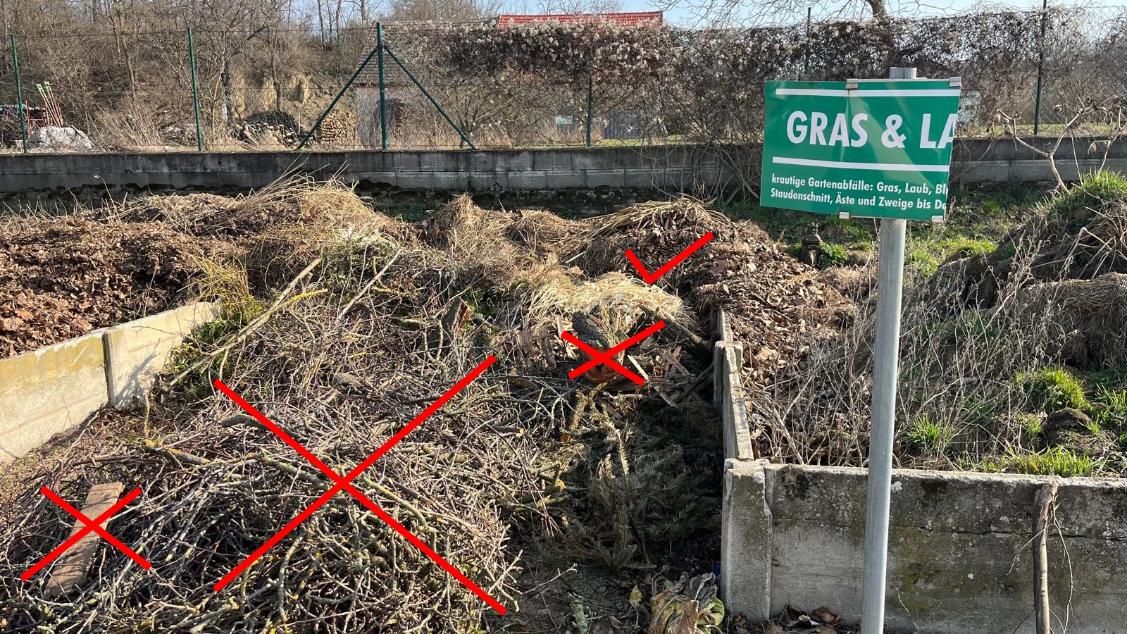 Bitte achte auf die richtige Trennung der Gartenabfälle, damit eine ordnungsgemäße Entsorgung gewährleistet werden kann.
