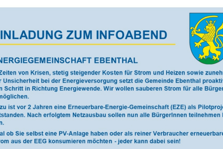 Gemeinsam zu einer neuen, nachhaltigen Energieversorgung — das ist das Ziel der Erneuerbare-Energie-Zukunft (EZE) Ebenthal.…